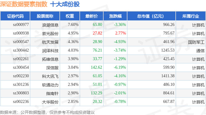证券之星消息,1月19日,深证数据要素(970053)指数报收于4418.37点,跌1.82%,成交849.19亿元,换手率4.34%。当日该指数成份股中,上涨的有11家,朗新科技以7.36%的涨幅领涨,下跌的有39家,锐捷网络以12.14%的跌幅领跌。