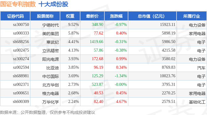 国证专利(980070)指数十大成份股详情如下: