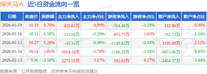 证券之星消息,截至2026年1月19日收盘,深天马A(000050)报收于10.19元,上涨0.79%,换手率1.76%,成交量43.19万手,成交额4.37亿元。