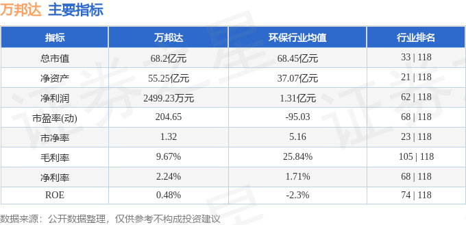 万邦达2025年三季报显示,前三季度公司主营收入17.84亿元,同比下降5.56%;归母净利润2499.23万元,同比上升390.47%;扣非净利润1212.3万元,同比上升164.19%;其中2025年第三季度,公司单季度主营收入5.97亿元,同比下降5.4%;单季度归母净利润248.78万元,同比上升114.3%;单季度扣非净利润-349.65万元,同比上升82.82%;负债率36.63%,投资收益1579.37万元,财务费用829.21万元,毛利率9.67%。万邦达(300055)主营业务:包括新材料的生产与销售、危固废处理、水务工程及运营、新能源综合利用等,致力于通过工程总承包、投资、运营和技术咨询等方式为用户提供环境系统整体解决方案,已逐步形成南材料、北固废、西水务的产业格局。