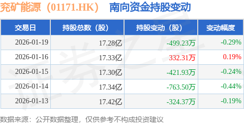 证券之星消息,1月19日南向资金减持499.23万股兖矿能源(01171.HK)。近5个交易日中,获南向资金减持的有4天,累计净减持1676.72万股。近20个交易日中,获南向资金减持的有15天,累计净减持5134.85万股。截至目前,南向资金持有兖矿能源(01171.HK)17.28亿股,占公司已发行普通股的42.39%。