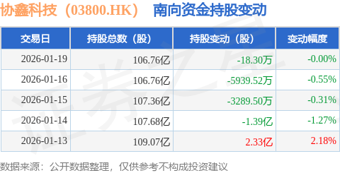 证券之星消息,1月19日南向资金减持18.3万股协鑫科技(03800.HK)。近5个交易日中,获南向资金增持的有1天,累计净增持182.48万股。近20个交易日中,获南向资金减持的有19天,累计净减持13.17亿股。截至目前,南向资金持有协鑫科技(03800.HK)106.76亿股,占公司已发行普通股的32.13%。