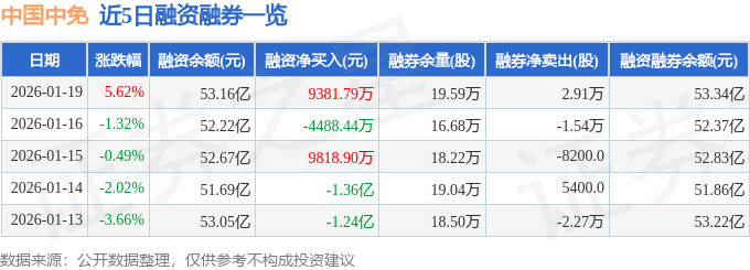 证券之星消息,截至2026年1月19日收盘,中国中免(601888)报收于93.4元,上涨5.62%,换手率3.66%,成交量71.52万手,成交额65.78亿元。