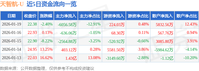 1月19日的资金流向数据方面,主力资金净流出6056.58万元,占总成交额12.91%,游资资金净流入224.03万元,占总成交额0.48%,散户资金净流入5832.56万元,占总成交额12.43%。