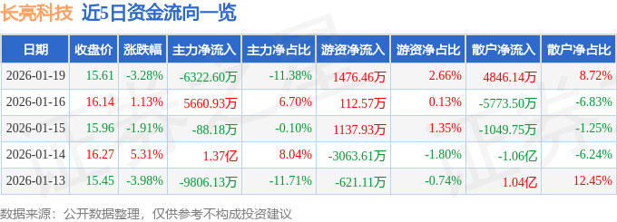 1月19日的资金流向数据方面,主力资金净流出6322.6万元,占总成交额11.38%,游资资金净流入1476.46万元,占总成交额2.66%,散户资金净流入4846.14万元,占总成交额8.72%。