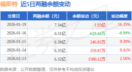 证券之星消息,1月19日,福斯特(603806)融资买入1.83亿元,融资偿还8025.01万元,融资净买入1.03亿元,融资余额7.32亿元,当日融资净买入排名第37,近20个交易日中有11个交易日出现融资净买入。