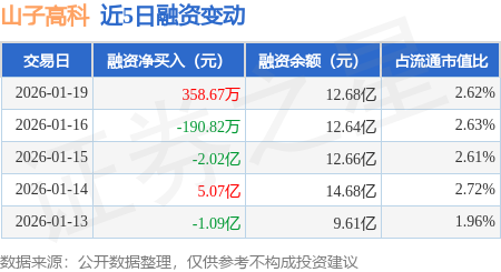 证券之星消息,1月19日,山子高科(000981)融资买入1.89亿元,融资偿还1.86亿元,融资净买入358.67万元,融资余额12.68亿元,近20个交易日中有15个交易日出现融资净买入。