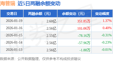 证券之星消息,1月19日,海普瑞(002399)融资买入550.96万元,融资偿还203.26万元,融资净买入347.69万元,融资余额2.59亿元,近20个交易日中有13个交易日出现融资净买入。