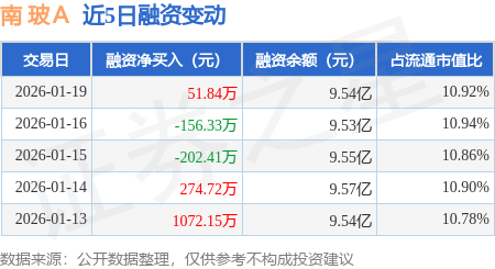 证券之星消息,1月19日,南 玻A(000012)融资买入610.39万元,融资偿还558.56万元,融资净买入51.84万元,融资余额9.54亿元,近20个交易日中有12个交易日出现融资净买入。