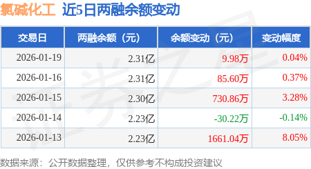 证券之星消息,1月19日,氯碱化工(600618)融资买入3975.46万元,融资偿还3974.22万元,融资净买入1.23万元,融资余额2.29亿元,近3个交易日已连续净买入累计815.2万元,近20个交易日中有11个交易日出现融资净买入。