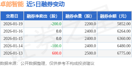 证券之星消息,1月19日,卓郎智能(600545)融资买入288.78万元,融资偿还382.49万元,融资净卖出93.7万元,融资余额1.1亿元。