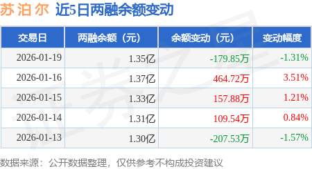 证券之星消息,1月19日,苏 泊 尔(002032)融资买入291.24万元,融资偿还482.46万元,融资净卖出191.22万元,融资余额1.33亿元,近20个交易日中有15个交易日出现融资净买入。