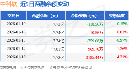 证券之星消息,1月19日,中科软(603927)融资买入4099.58万元,融资偿还4322.4万元,融资净卖出222.82万元,融资余额7.66亿元,近20个交易日中有11个交易日出现融资净买入。