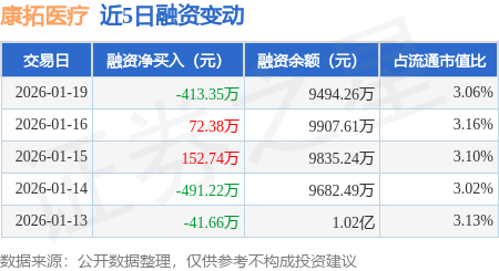 证券之星消息,1月19日,康拓医疗(688314)融资买入508.31万元,融资偿还921.66万元,融资净卖出413.35万元,融资余额9494.26万元。