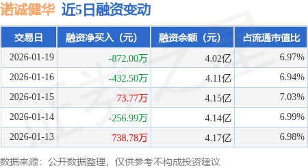 证券之星消息,1月19日,诺诚健华(688428)融资买入969.83万元,融资偿还1841.83万元,融资净卖出872.0万元,融资余额4.02亿元。