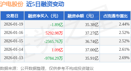 证券之星消息,1月19日,沪电股份(002463)融资买入4.83亿元,融资偿还6.72亿元,融资净卖出1.89亿元,融资余额35.38亿元。