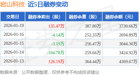 证券之星消息,1月19日,岩山科技(002195)融资买入8.63亿元,融资偿还11.41亿元,融资净卖出2.77亿元,融资余额22.08亿元。