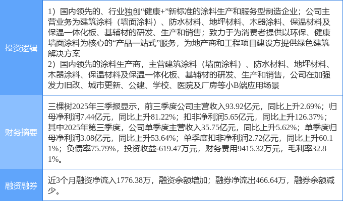 证券之星消息,三棵树1月20日涨停收盘,收盘价48.38元。该股于14点15分涨停,未打开涨停,截止收盘封单资金为7746.51万元,占其流通市值0.22%。