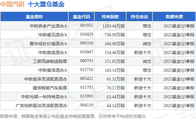 根据2025基金Q3季报公募基金重仓股数据,重仓该股的公募基金共24家,其中持有数量最多的公募基金为中欧基金的中欧养老产业混合A。中欧养老产业混合A目前规模为16.52亿元,最新净值3.0893(1月19日),较上一交易日上涨1.95%,近一年上涨17.99%。该公募基金现任基金经理为许文星。许文星在任的基金产品包括:中欧创业板两年定开混合A,管理时间为2020年7月16日至今,期间收益率为2.41%;中欧睿见混合A,管理时间为2020年11月6日至今,期间收益率为-4.98%;中欧睿泽混合A,管理时间为2021年9月23日至今,期间收益率为-20.08%。
