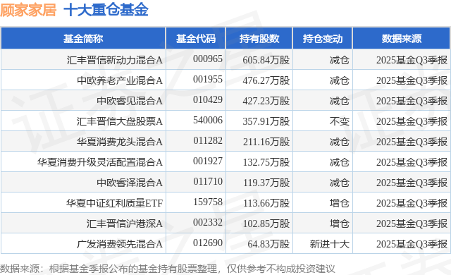 重仓顾家家居的前十大公募基金请见下表: