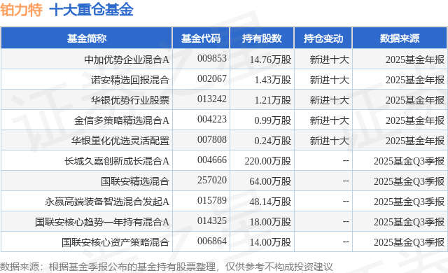 重仓铂力特的前十大公募基金请见下表: