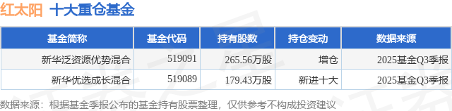 根据2025基金Q3季报公募基金重仓股数据,重仓该股的公募基金共2家,其中持有数量最多的公募基金为新华基金的新华泛资源优势混合。新华泛资源优势混合目前规模为6.61亿元,最新净值6.8726(1月19日),较上一交易日上涨0.03%,近一年上涨28.98%。该公募基金现任基金经理为赖庆鑫。赖庆鑫在任的基金产品包括:新华战略新兴产业灵活配置混合,管理时间为2023年7月6日至今,期间收益率为-8.47%;新华优选成长混合,管理时间为2023年11月23日至今,期间收益率为31.78%;新华景气行业混合A,管理时间为2024年12月27日至今,期间收益率为25.58%。
