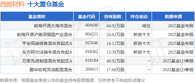 根据2025基金年报公募基金重仓股数据,重仓该股的公募基金共4家,其中持有数量最多的公募基金为前海开源基金的前海开源大海洋混合。前海开源大海洋混合目前规模为4.42亿元,最新净值2.468(1月19日),较上一交易日上涨1.9%,近一年上涨66.2%。该公募基金现任基金经理为刘宏。刘宏在任的基金产品包括:前海开源周期优选混合A,管理时间为2021年3月12日至今,期间收益率为79.45%;前海开源沪港深农业混合A,管理时间为2021年3月12日至今,期间收益率为-29.13%;前海开源股息率100强股票A,管理时间为2021年4月22日至今,期间收益率为34.58%;