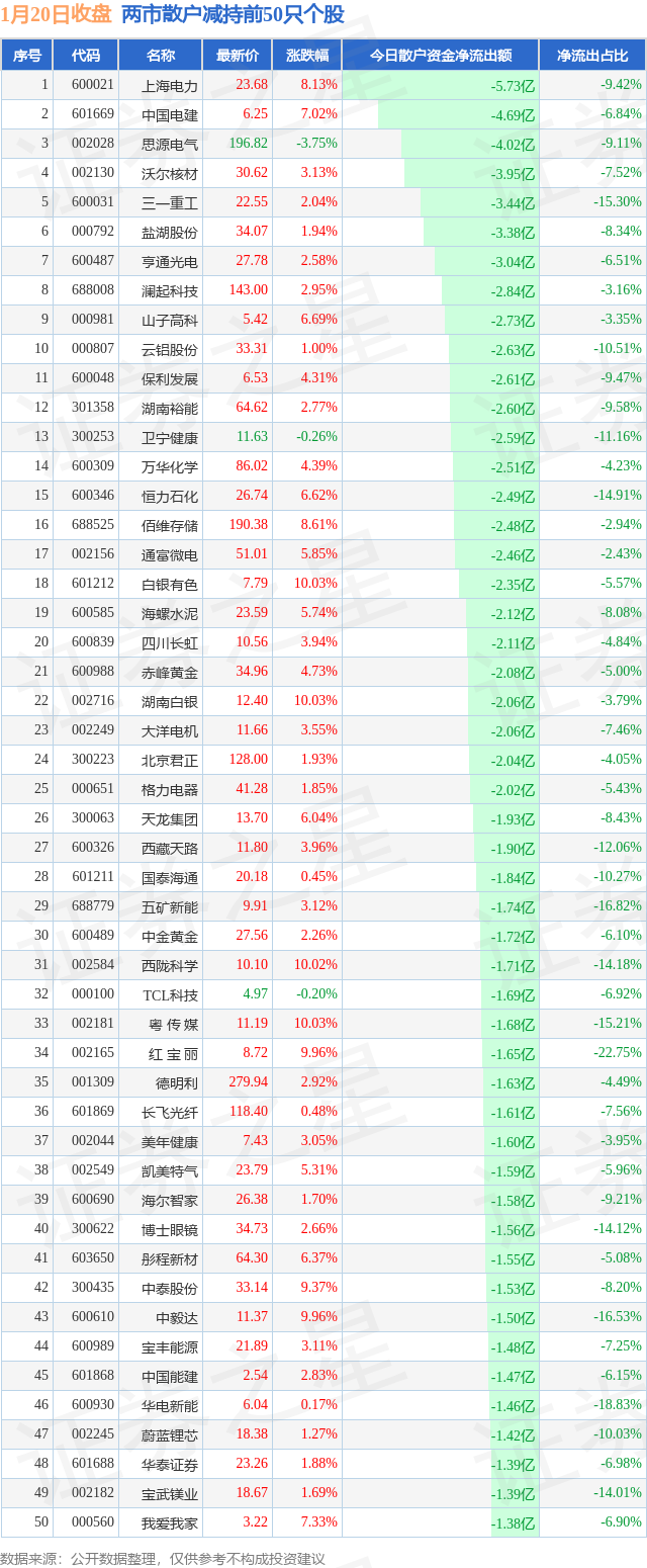 两市散户减持最多的前十只个股为: