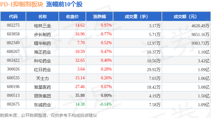 从资金流向上来看,当日PD-1抑制剂板块主力资金净流出7.98亿元,游资资金净流出1.55亿元,散户资金净流入9.54亿元。PD-1抑制剂板块个股资金流向见下表: