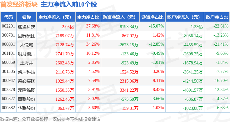 从资金流向上来看,当日首发经济板块主力资金净流入2.25亿元,游资资金净流入1.11亿元,散户资金净流出3.36亿元。首发经济板块个股资金流向见下表: