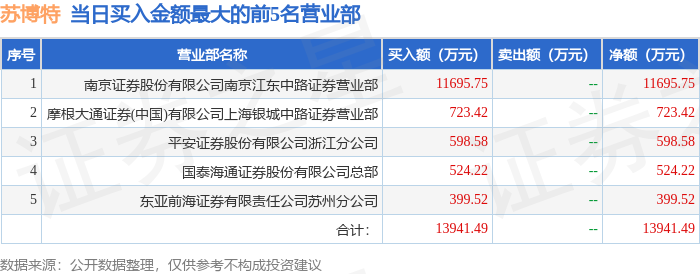 从龙虎榜公布的当日买卖数据来看,华泰无锡梁清路等知名游资榜上有名。(知名游资华泰无锡梁清路一般指华泰证券股份有限公司无锡梁清路证券营业部席位,根据市场资料整理,仅供参考)