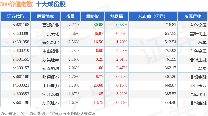 380价值(000118)指数十大成份股详情如下: