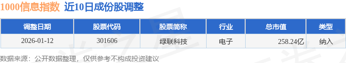近10日内1000信息(399388)指数成份股做了调整,新纳入了1只股票。