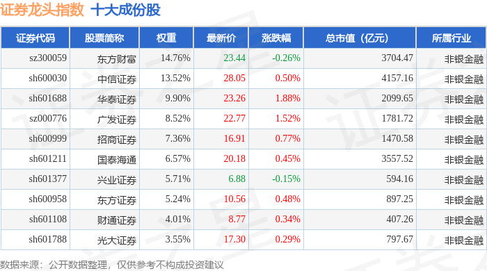 证券龙头(399437)指数十大成份股详情如下: