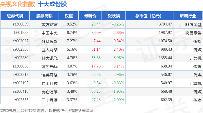 资金流向方面,央视文化(399557)指数成份股当日主力资金净流出合计27.55亿元,游资资金净流入合计7.86亿元,散户资金净流入合计19.7亿元。成份股资金流向详情见下表: