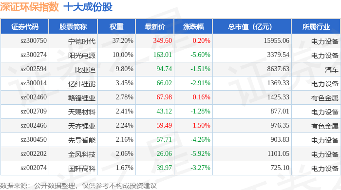 深证环保(399638)指数十大成份股详情如下: