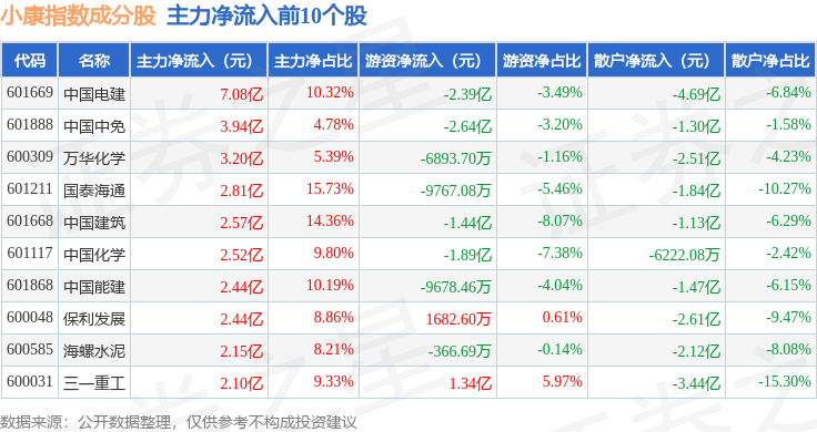 资金流向方面,小康指数(399901)成份股当日主力资金净流入合计17.73亿元,游资资金净流入合计4.65亿元,散户资金净流出合计22.39亿元。成份股资金流向详情见下表: