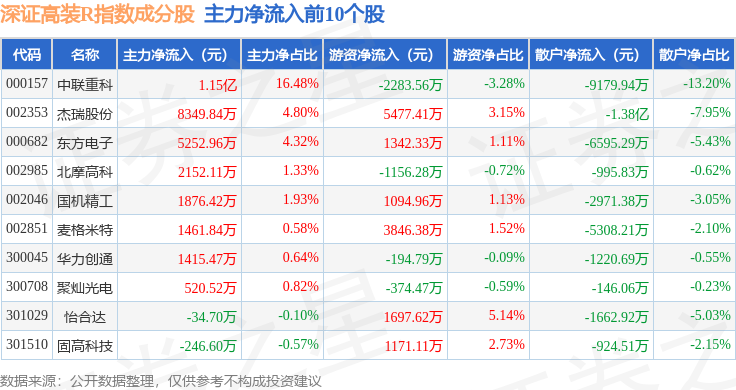 资金流向方面,深证高装R(470037)指数成份股当日主力资金净流出合计68.05亿元,游资资金净流入合计18.1亿元,散户资金净流入合计49.95亿元。成份股资金流向详情见下表: