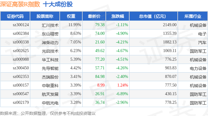 深证高装R(470037)指数十大成份股详情如下: