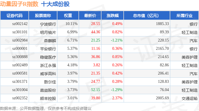 动量因子R(480057)指数十大成份股详情如下: