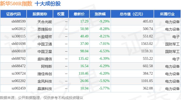 资金流向方面,新华500R(489001)指数成份股当日主力资金净流出合计370.15亿元,游资资金净流入合计95.6亿元,散户资金净流入合计274.55亿元。成份股资金流向详情见下表: