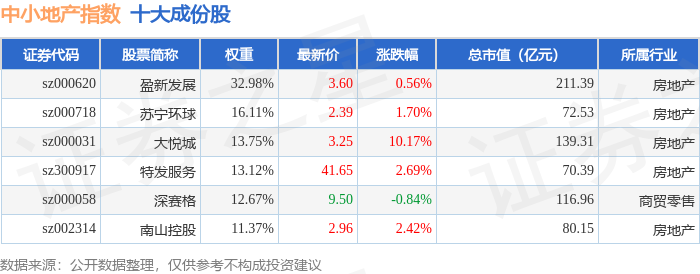 中小地产(971002)指数十大成份股详情如下: