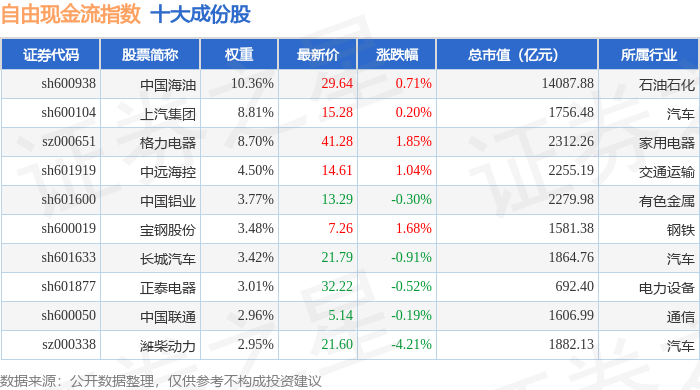 自由现金流(980092)指数十大成份股详情如下: