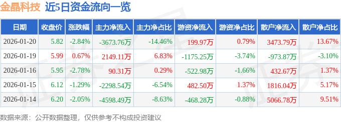 1月20日的资金流向数据方面,主力资金净流出3673.76万元,占总成交额14.46%,游资资金净流入199.97万元,占总成交额0.79%,散户资金净流入3473.79万元,占总成交额13.67%。