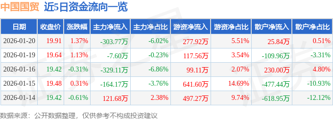 证券之星消息,截至2026年1月20日收盘,中国国贸(600007)报收于19.91元,上涨1.37%,换手率0.25%,成交量2.55万手,成交额5046.66万元。