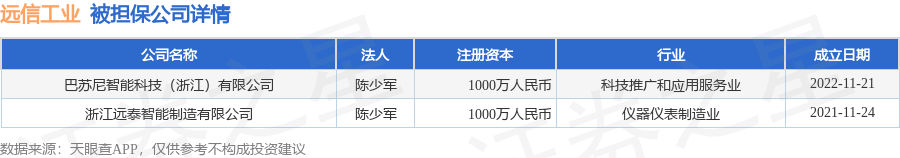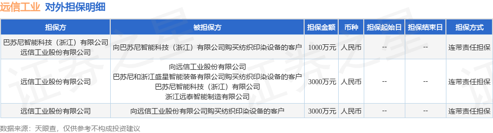 远信工业1月18日披露3笔对外担保,被担保公司6家。对外担保明细如下表: