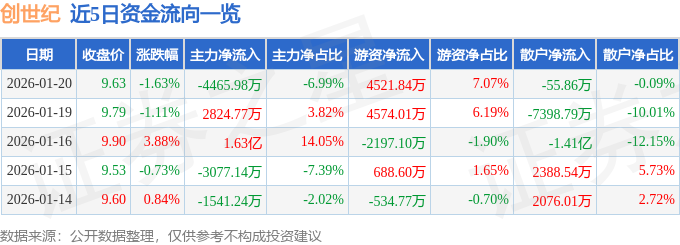 1月20日的资金流向数据方面,主力资金净流出4465.98万元,占总成交额6.99%,游资资金净流入4521.84万元,占总成交额7.07%,散户资金净流出55.86万元,占总成交额0.09%。