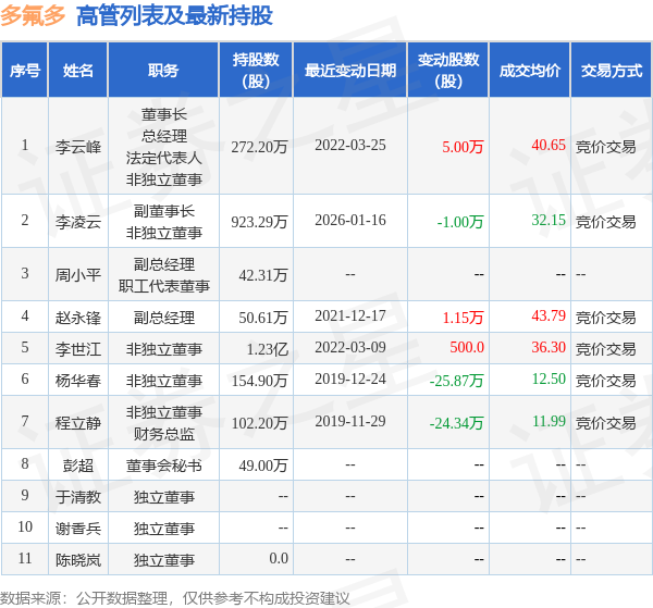 多氟多的高管列表及最新持股情况如下: