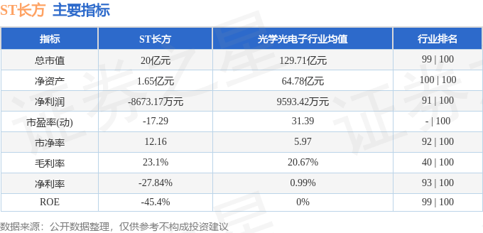 ST长方2025年三季报显示,前三季度公司主营收入3.12亿元,同比下降17.58%;归母净利润-8673.17万元,同比下降131.61%;扣非净利润-9102.69万元,同比下降71.13%;其中2025年第三季度,公司单季度主营收入9880.47万元,同比下降8.7%;单季度归母净利润-3257.78万元,同比下降80.69%;单季度扣非净利润-3347.38万元,同比下降52.05%;负债率81.08%,财务费用1750.08万元,毛利率23.1%。ST长方(300301)主营业务:LED离网照明、应急照明、电风扇、便携式储能产品等其他电子产品及LED照明光源器件的研发、设计、生产和销售。