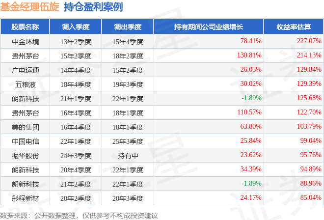 伍旋管理的鹏华盛世创新LOF基金在13年2季度买入中金环境,在持有2年又2个季度后在15年4季度卖出。持有期间的估算收益率为227.07%,持有期间中金环境在2013年到2015年的年报归属净利润增幅达78.41%。